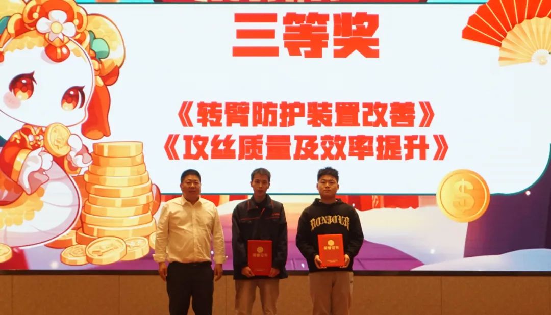 通過與會成員全員進行投票評選,《輪輞生產(chǎn)線外觀及自動化改善》、《凱傲項目質(zhì)量改善提升》榮獲一等獎,《橋殼焊接改善》、《快速檢測裝置的設計制作》榮獲二等獎,《攻絲質(zhì)量及效率提升》、《轉(zhuǎn)臂防護裝置改善》榮獲三等獎。