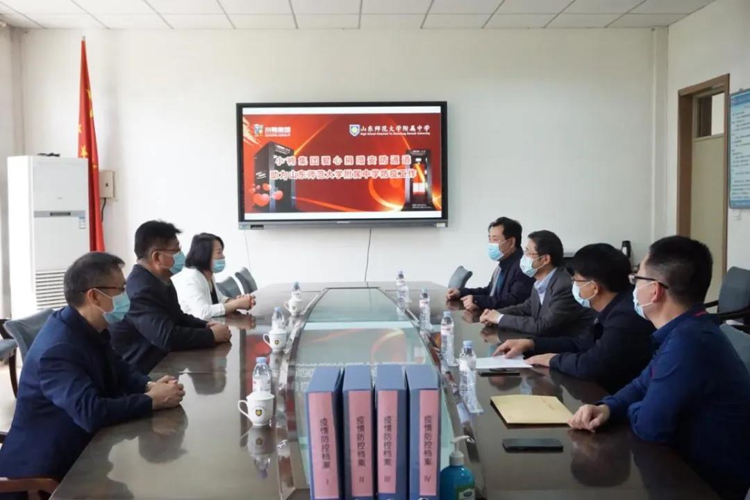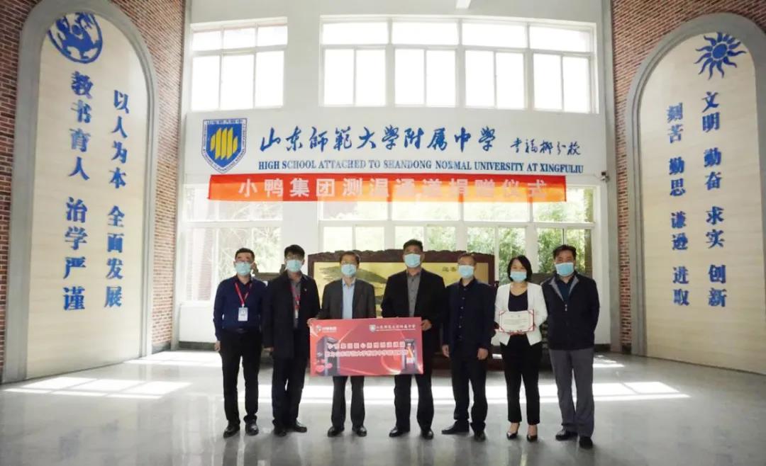 瀏覽量:05月15日,小鴨精工機械公司將價值17萬余元的兩臺智能測溫通道分別捐贈給了齊魯工業(yè)大學(xué)和山東師范大學(xué)附屬中學(xué),集團黨委副書記、紀(jì)委書記、工會主席邵紀(jì)華代表小鴨集團及小鴨精工親自將測溫通道送到兩所學(xué)校。齊魯工業(yè)大學(xué)(山東省科學(xué)院)黨委委員、副校長(副院長)曹茂永及山東師大附中校長荊兆晶接受捐贈并分別講話表達了感謝之情。