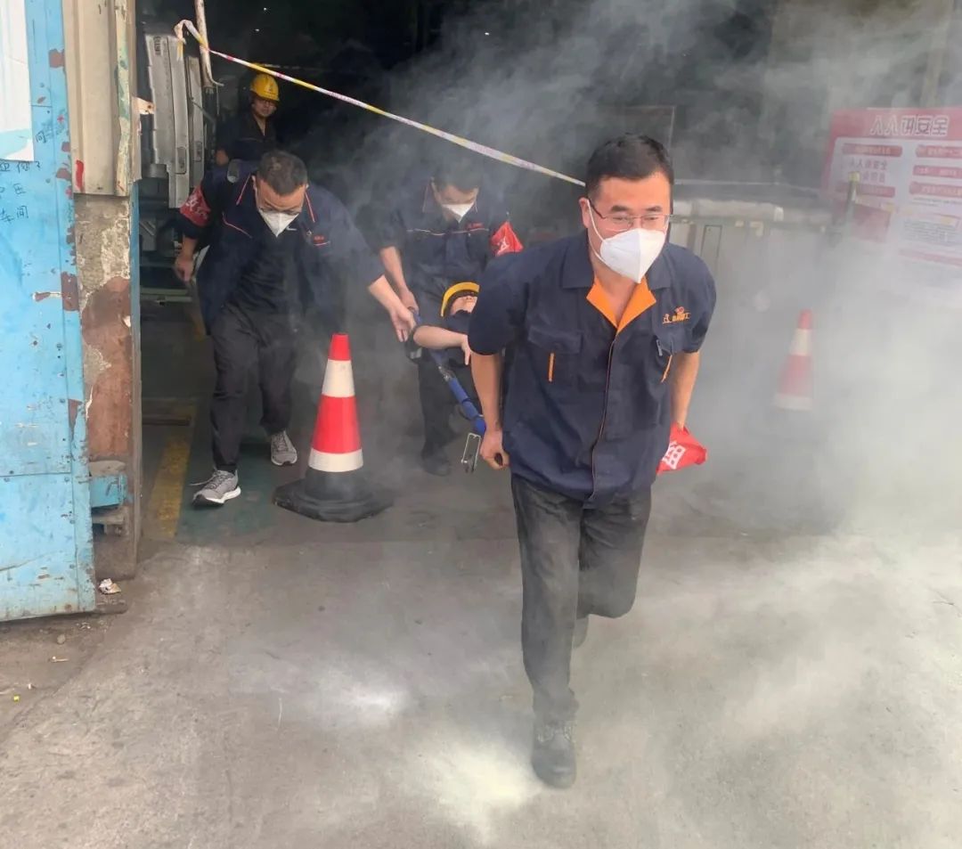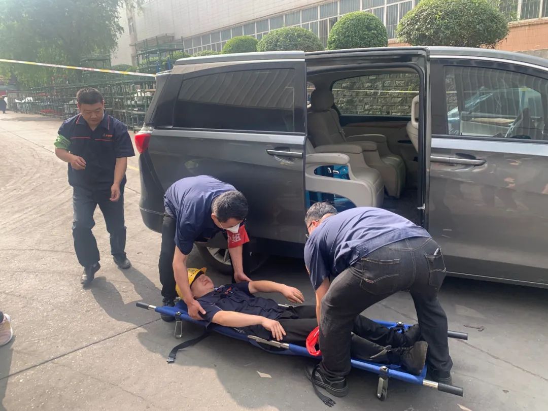 “演練開始!”隨著事故應(yīng)急救援指揮領(lǐng)導(dǎo)小組的一聲令下,本次演練正式開始。在火源附近,一名職工昏迷在地,搶救救援組攜滅火器奔向火源,立即開展撲救工作;醫(yī)療救護(hù)組使用擔(dān)架將受傷人員轉(zhuǎn)移至安全地點(diǎn),對(duì)傷者進(jìn)行緊急搶救;現(xiàn)場(chǎng)保衛(wèi)組人員使用警戒線隔離火災(zāi)區(qū)域,防止事故擴(kuò)大和次生災(zāi)害發(fā)生;后勤保障組人員組織車輛,將受傷人員運(yùn)送至醫(yī)院醫(yī)治;其他職工順利撤離到安全地帶后,立即清點(diǎn)上報(bào)人數(shù)。