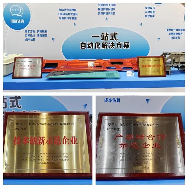 會(huì)展期間,同期舉辦2024中國(guó)(濟(jì)南)國(guó)際機(jī)器人與高端裝備新質(zhì)生產(chǎn)力發(fā)展峰會(huì),會(huì)上由中共機(jī)器人與高端裝備產(chǎn)業(yè)鏈委員會(huì)、中國(guó)(國(guó)際)機(jī)器人與高端裝備產(chǎn)業(yè)聯(lián)盟、濟(jì)南(國(guó)際)機(jī)器人與高端裝備產(chǎn)業(yè)協(xié)會(huì)授予小鴨精工年度“產(chǎn)學(xué)研合作示范企業(yè)”、“技術(shù)創(chuàng)新示范企業(yè)”,授予國(guó)基泰祥“技術(shù)創(chuàng)新示范企業(yè)”。