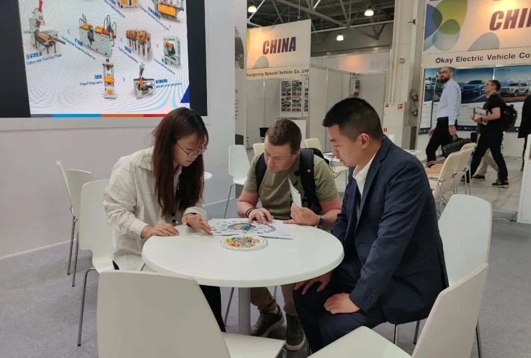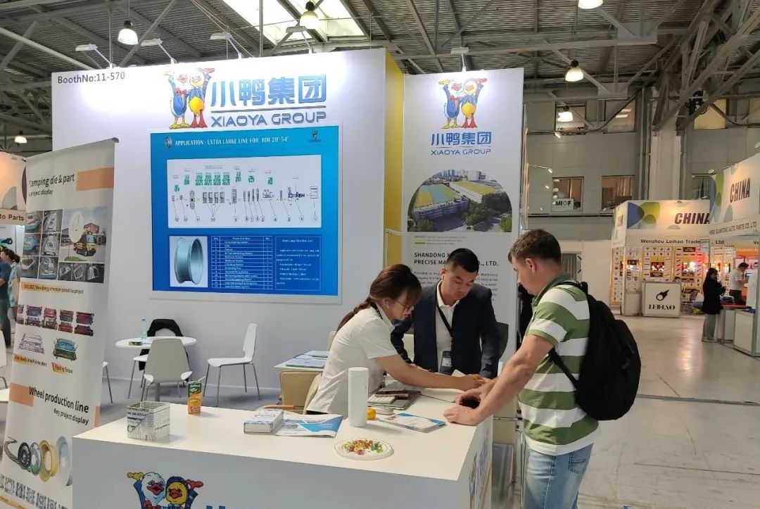 本次小鴨精工攜車橋產(chǎn)品參會(huì),展會(huì)上通過(guò)視頻和宣傳冊(cè)展示精工自動(dòng)化車輪生產(chǎn)線解決方案和汽車模具、車輪模具產(chǎn)品,吸引俄羅斯本地專業(yè)客戶洽談業(yè)務(wù)。